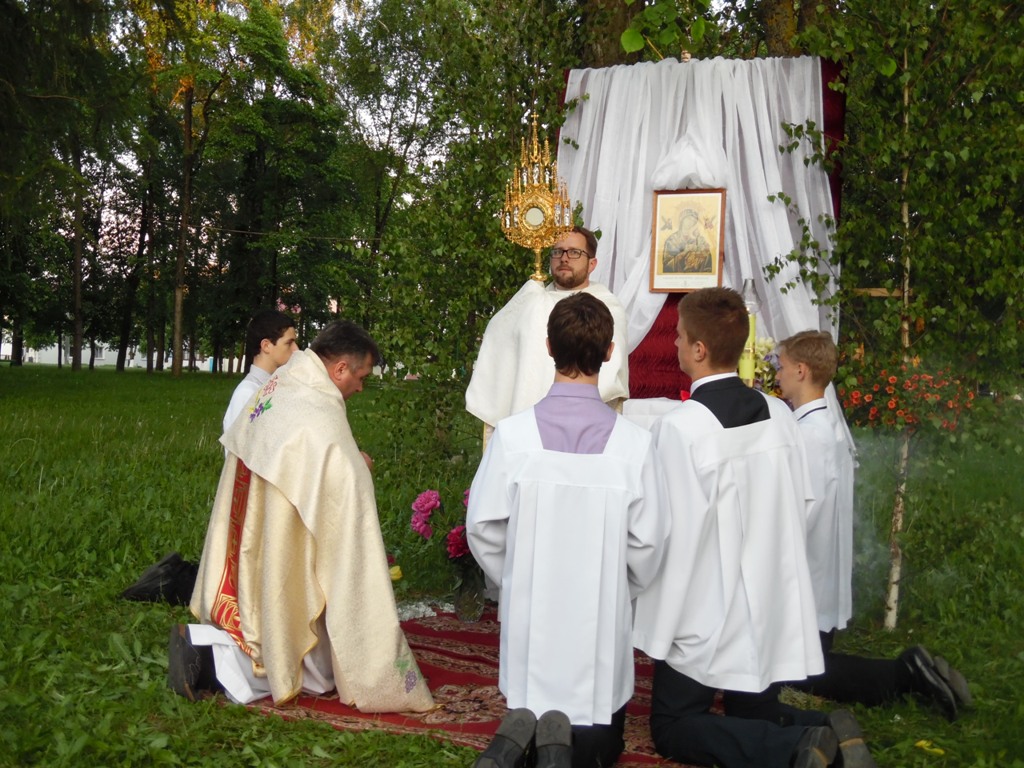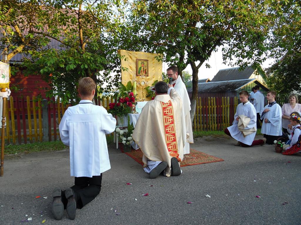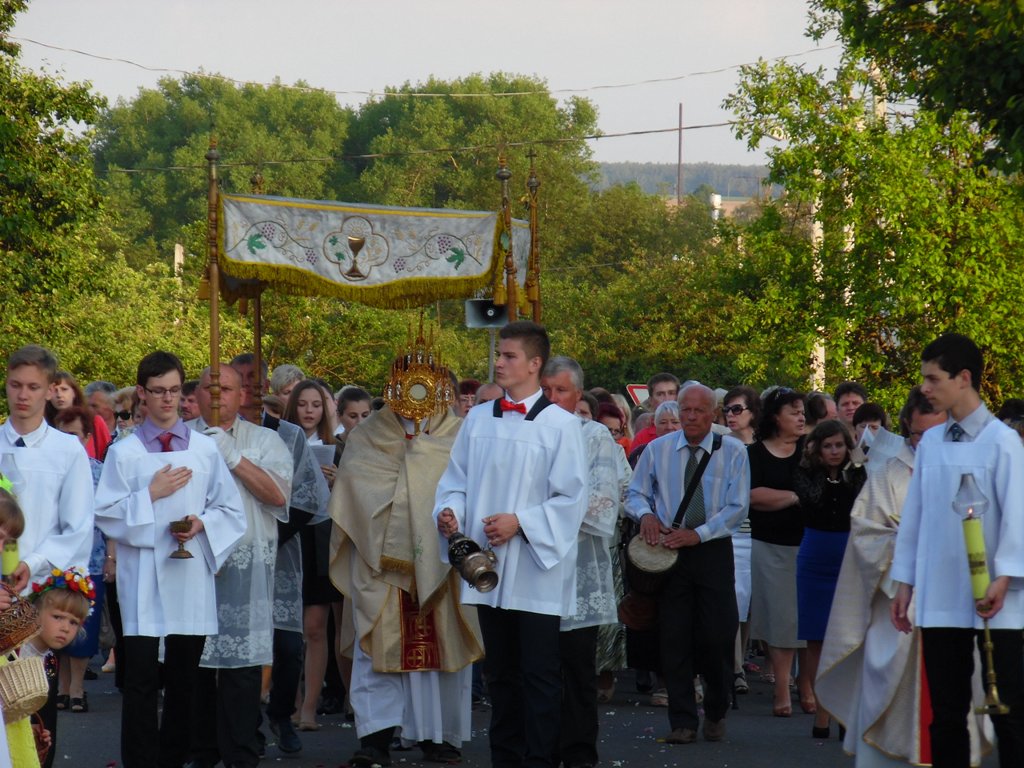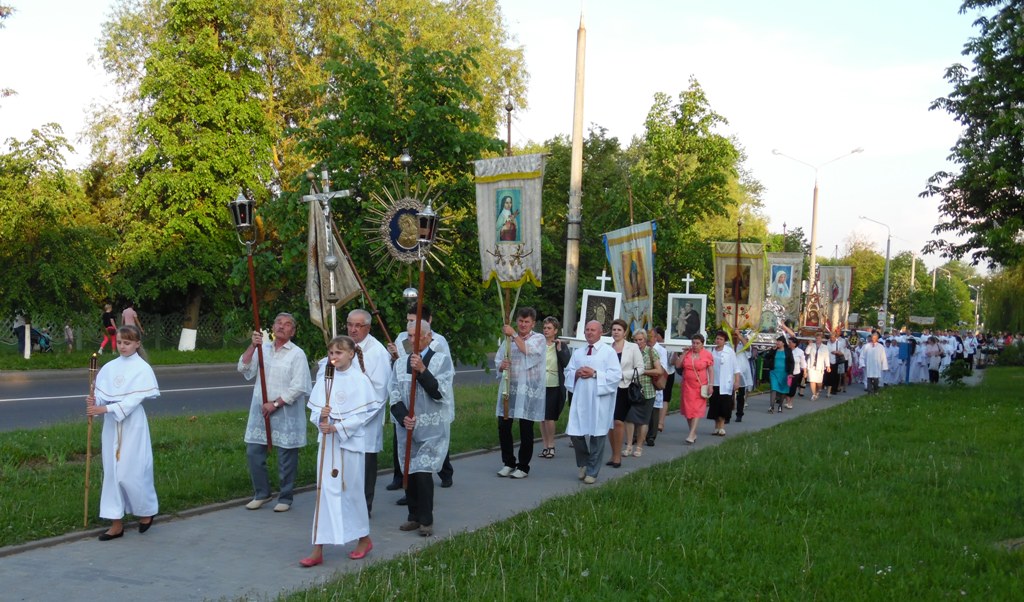 Пасля вячэрняй святой Імшы сотні вернікаў разам са святарамі а.Вальдэмарам Слотам і а.Анджэем Іадкоўскім прайшлі вуліцамі райцэнтра, каб публічна падзякаваць Богу за ўсе дары, атрыманыя ад Яго, і вызнаць сваю веру ў прысутнасць Езуса ў Найсвяцейшым Сакраманце. Працэсія затрымлівалася каля чатырох алтароў, дзе чыталіся фрагменты Евангелля і адбывалася бласлаўленне Найсвяцейшым Сакрамантам.