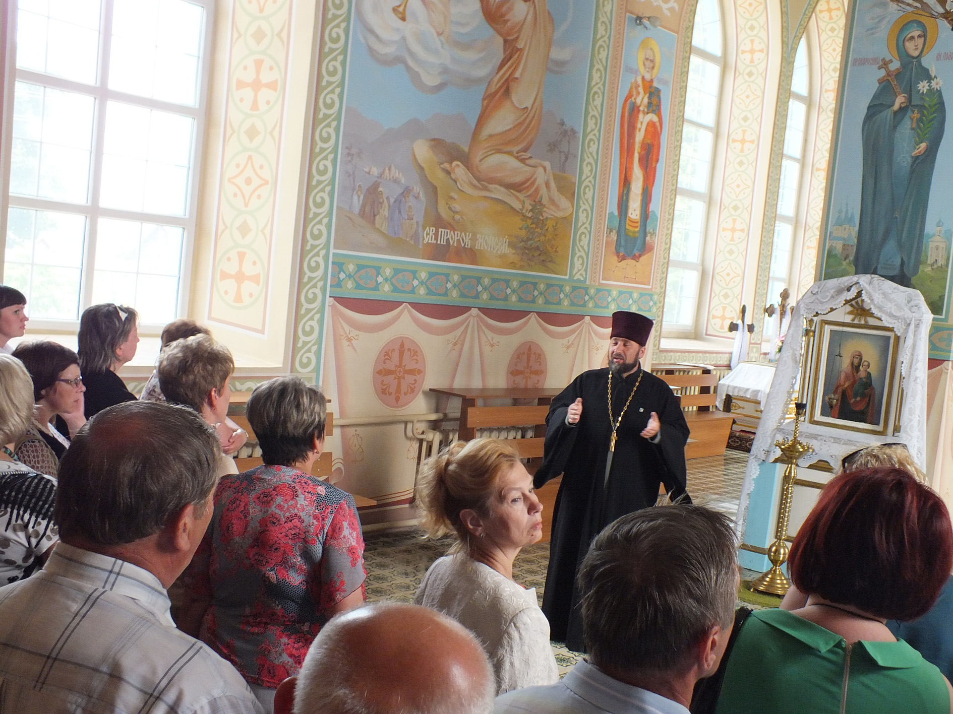Впечатлил гостей своей красотой и величием вновь отреставрированный православный храм – церковь Покрова Пресвятой Богородицы в Олекшицах. Настоятель храма протоирей Сергий Гмир рассказал посетителям историю возрождения святыни, непосредственное участие в котором принимали руководство района, председатели хозяйств, прихожане.