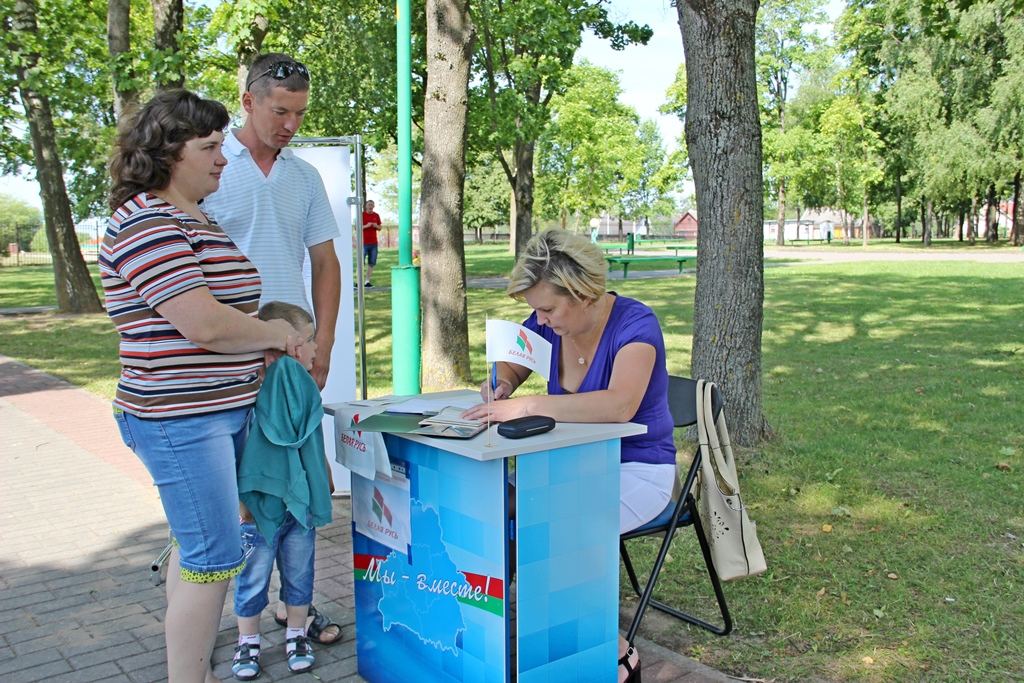 Так, 25 июля с 11.00 до 13.00 в сквере имени 500-летия г.п.Б.Берестовица прошел пикет по сбору подписей в поддержку действующего Президента страны Александра Лукашенко, организованный районной организацией РОО «Белая Русь». Члены инициативной группы общественного объединения «Белая Русь» пообщались с жителями и гостями городского поселка, предложили всем желающим оставить свою подпись в поддержку Александра Лукашенко.
