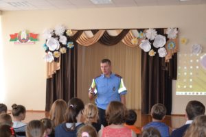 Старший госавтоинспектор ОГАИ Берестовицкого РОВД Виктор Котов рассказал ребятам об уже случившихся в районе ДТП и напомнил об основных правилах, которые должны соблюдать дети на дороге. Ребята с удовольствием демонстрировали свои познания в этой области, а после просмотра фильма о дорожных происшествиях закрепили золотое правило пешехода — смотреть по сторонам, переходя дорогу.