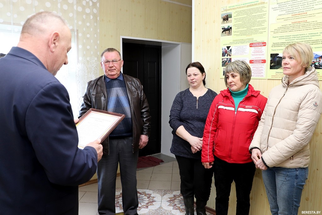 Председатель райкома профсоюза работников агропромышленного комплекса Василий Гритченко, председатель профкома КСУП «Воронецкий» Жана Янушко и главный зоотехник хозяйства Викентий Адамчук встретились с работниками молочного цеха на фермах «Матеевичи» и «Волотынь». Лучшим животноводам были вручены Благодарственные письма от райкома профсоюза работников агропромышленного комплекса и денежные премии. К слову, в числе награжденных оказался и главный зоотехник Викентий Адамчук. Именно от него в немалой степени зависит выполнение планов по повышению эффективности работы животноводческой отрасли. Заслуженную награду из рук председателя райкома профсоюза работников агропромышленного комплекса Василия Гритченко он принимал вместе с животноводами на молочнотоварной ферме в Матеевичах.