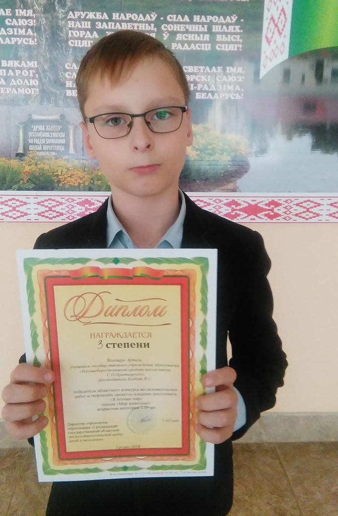 Ва ўзроставай катэгорыі 7-10 гадоў Дыпломам ІІІ ступені узнагароджаны Арцём Валашчук, чацвёртакласнік Вялікабераставіцкай сярэдняй школы. У секцыі “Свет жывёл” ён прадставіў даследчую работу