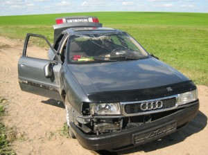 18 июля старший инспектор ДПС ОГАИ РОВД, неся службу по надзору за дорожным движением на территории Берестовицкого сельского Совета, возле деревни Карповцы подал сигнал об остановке водителю автомобиля марки Ауди-80. Однако водитель транспортного средства законные требования об остановке проигнорировал и попытался скрыться, увеличивая скорость движения. В ходе преследования автомобиля было видно, что водитель находится в состоянии алкогольного опьянения, так как его автомобиль вилял со стороны в сторону. На участке автодороги Синьки – Пархимовцы водитель Ауди-80 не справился с управлением, автомобиль съехал в правый кювет и опрокинулся. Но даже после этого водитель попытался скрыться бегством, однако был задержан сотрудниками ОГАИ Берестовицкого РОВД. Водитель, гражданин К., житель д.Карповцы, был доставлен на медицинское освидетельствование в Берестовицкую ЦРБ. В выдыхаемом воздухе у него обнаружено 1.17 промилле алкоголя, что в три раза превышает установленную норму.