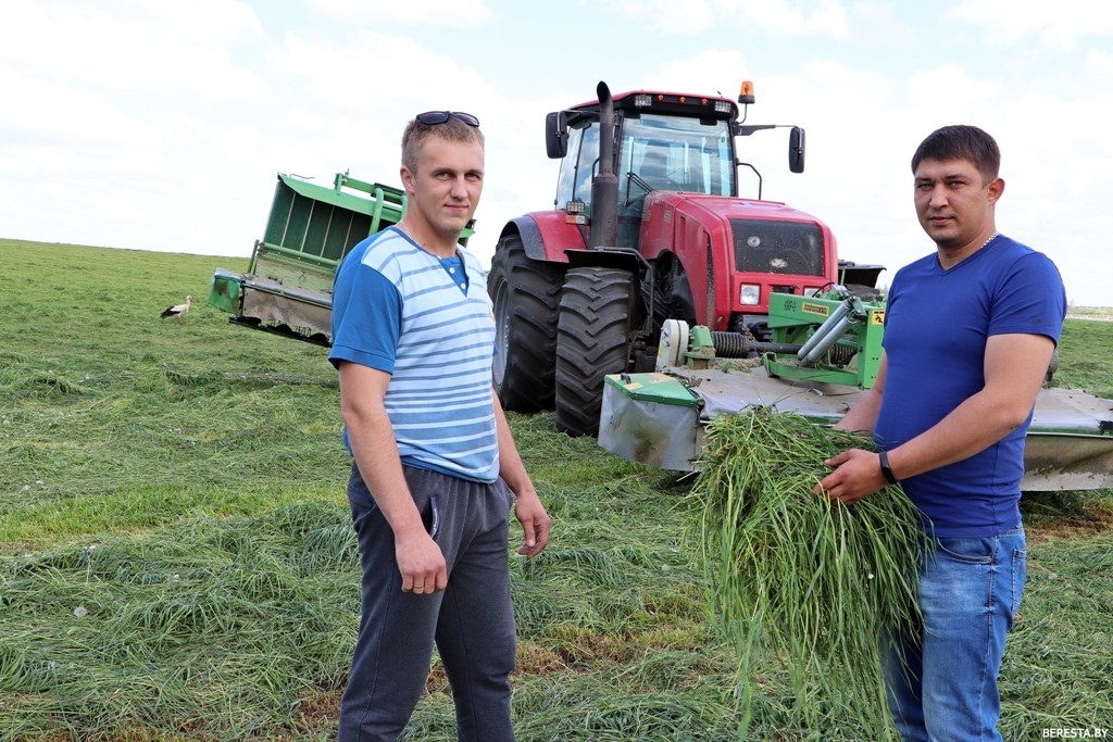 — Первым укосом нам предстоит убрать 511 гектаров многолетних трав, — говорит заместитель директора СПП «АгроМир» Павел Каневский. — Из них 230 гектаров занимают посевы люцерны, остальное — бобово-злаковые смеси. За 10 дней планируем первый укос завершить, если, конечно, погода не подведет. Хотя, с другой стороны, дожди благоприятно скажутся на отрастании скошенных трав и урожайности с последующих укосов. Начали с травосмесей, а потом приступим к люцерне. Нынешним урожаем трав мы довольны. Порядка 15-20 тонн зеленой массы получаем с каждого гектара. Это намного лучше, чем было в прошлом году.