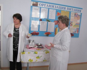 Выбор Большеэйсмонтовской школы как площадки для демонстрации опыта работы в этом направлении не случаен. По итогам 2012 года учреждение образования заняло 1 место в районном конкурсе на лучшую организацию питания. Все 117 учащихся охвачены здесь полноценным горячим питанием, а для тех, кто имеет в этом необходимость, организовано диетическое питание. Как отметила в своем выступлении директор школы Г.А.Македон, учреждение целенаправленно работает над укреплением материально-технической базы пищеблоков, удешевлением питания, постоянно ведется мониторинг качества питания, утвержденные двухнедельные рационы также всегда выполняются.