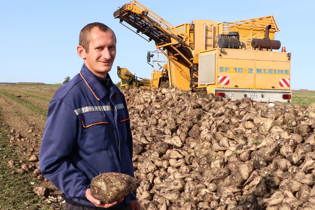 РУСП «Массоляны» славится своими механизаторами. Что ни фамилия – то передовик. Иван Кардаш – достойный представитель механизаторского «братства» и герой «сахарной» страды. Сахарная свекла – его забота: весной сам ее посеял на площади 2020 га, осенью – один убрал, управляя штурвалом комбайна «Kleine».