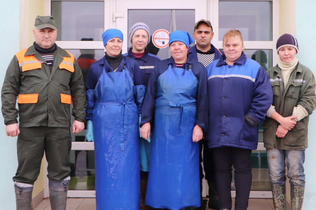 Дружные, позитивные, нацеленные на результат – на фото представлен далеко не весь коллектив товарного комплекса «Массоляны». Животноводы комплекса работают успешно. Производство мяса за 10 месяцев превысило 555 тонн. Среднесуточный привес составляет 731 грамм. Надлежащий уход за поголовьем КРС в количестве 1815 голов – дело непростое, но люди, работающие на ТК «Массоляны», проявляют максимум стараний.