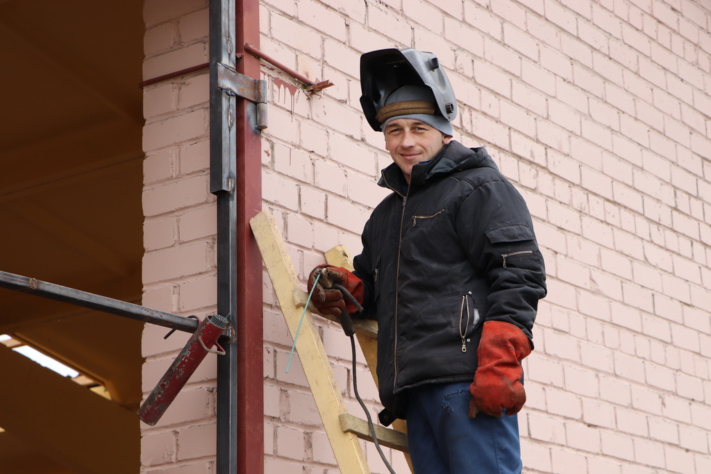 Теперь на объекте ведутся работы по установке металлических ворот, дверных проемов, других конструкций. Это задача бригады механизации трудоемких процессов во главе с Геннадием Затовка. Электрогазосварщики Александр Бирюк и Александр Глинкин, а также слесарь Александр Болзан (на снимке) свое дело знают. В умелых руках опытных мастеров работа спорится.