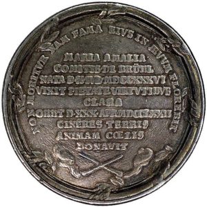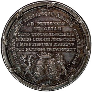 Срэбрны медаль, які выбіў Ежы Аўгуст Мнішак у гонар жонкі Марыі Амэліі пасля яе смерці
