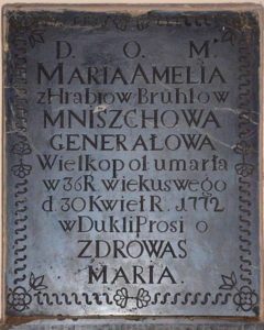 Вышэй на фотаздымку мармуровая табліца у гонар Марыі Амэліі, якая захавалась у адным з касцёлаў на Падкарпацці. Аналагічная табліца некалі была ў бераставіцкім касцёле.