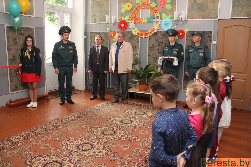 Настал черед открытия учебно-игровой комнаты. Символическую красную ленту перерезали заместитель председателя райисполкома Сергей Чикун, начальник отдела образования, спорта и туризма райисполкома Павел Панкевич и начальник РОЧС Александр Шляхотко.