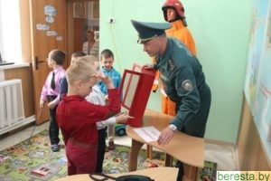 Комната безопасности оборудована сотрудниками РОЧС в одном из кабинетов Берестовицкого центра творчества детей и молодежи. На торжественное открытие пригласили воспитанников Берестовицкого детского яслей-сада. До начала мероприятия они с удовольствием «изучали» пожарную машину, которая расположилась рядом со зданием центра. А затем вместе со взрослыми собрались в холле на торжество.
