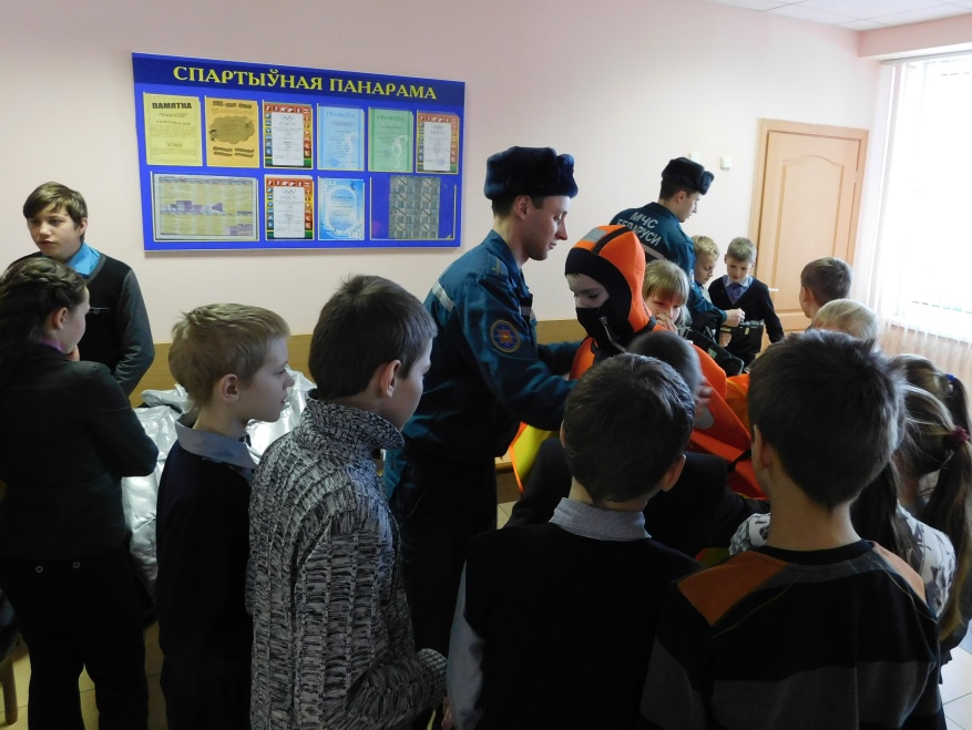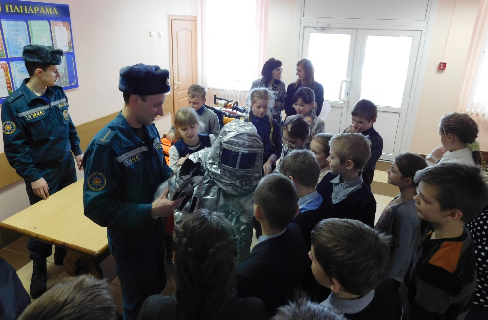 Для школьников в фойе спасатели показали специальное оборудование и снаряжение, а на улице всех ожидало знакомство с пожарной машиной и имеющимся в ней оборудованием. Заместитель начальника райотдела по чрезвычайным ситуациям Максим Сергеевич Чекмарёв рассказал ребятам об основных технических характеристиках и предназначении специальных средств и снаряжения. А затем началось самое интересное – дети могли примерить спасательные костюмы и боевую одежду, «поработать» на спасательном оборудовании, побывать в кабине пожарной машины.