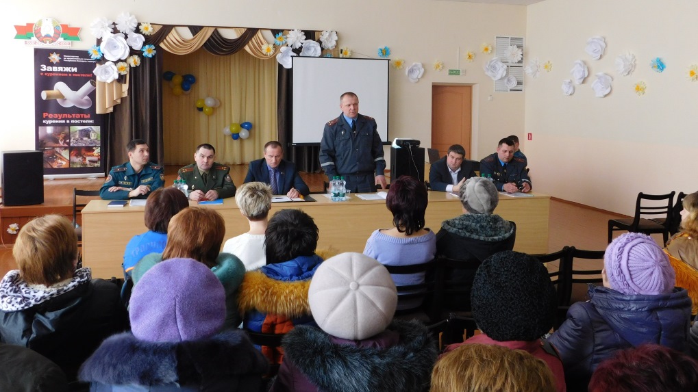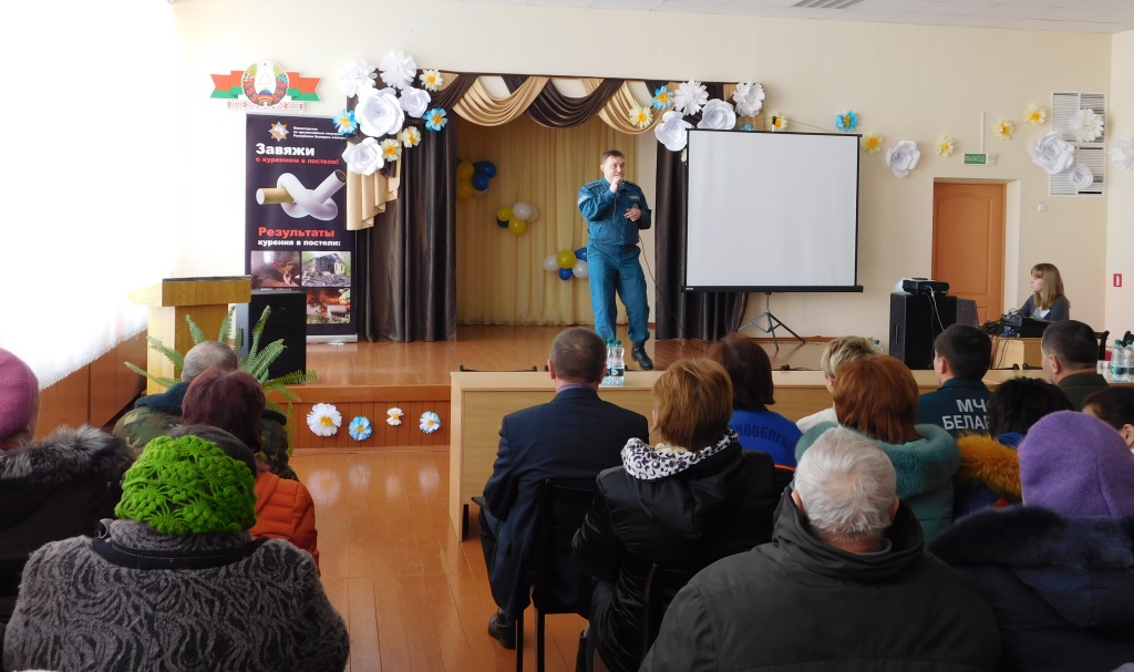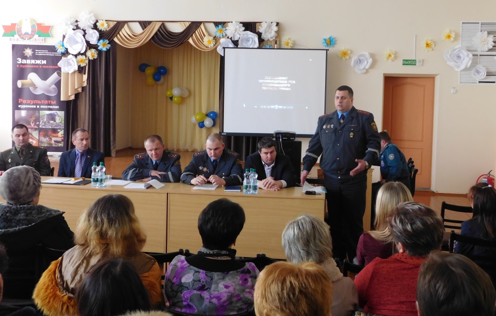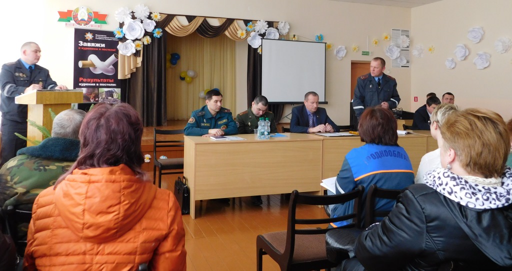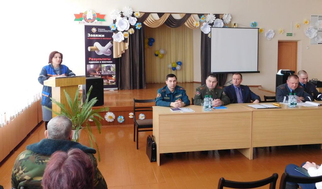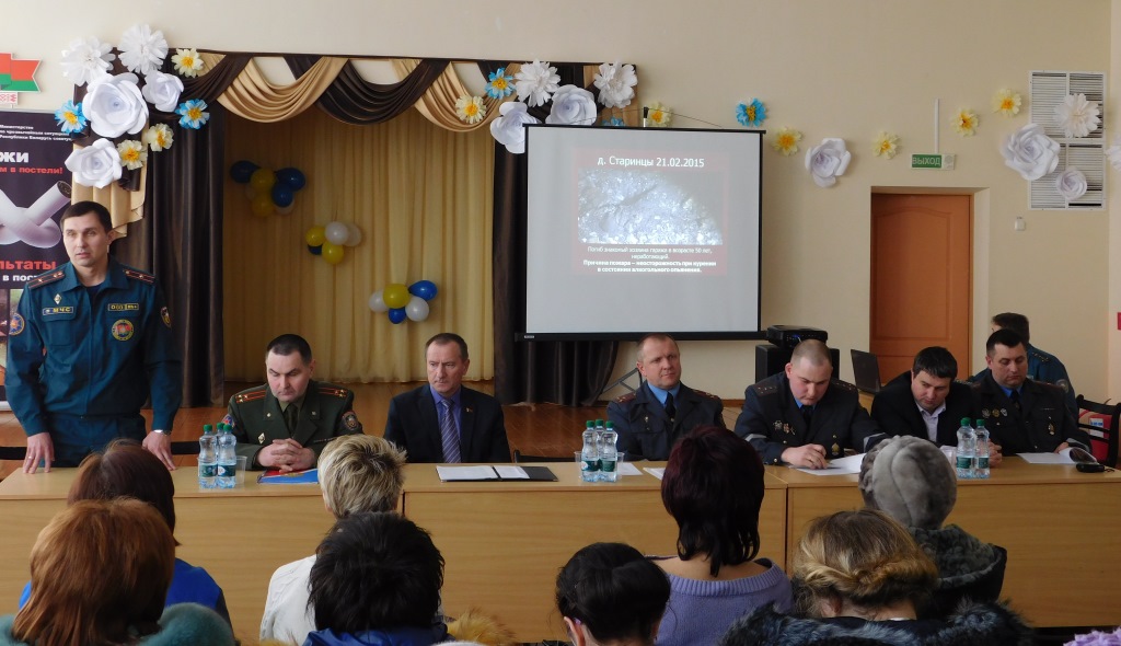 Начальник Берестовицкого районного отдела по чрезвычайным ситуациям Александр Сергеевич Шляхотко рассказал о пожарах с гибелью людей, которые произошло на территории Берестовицкого района в 2015 и 2016 годах. Населению были представлены слайды с этих пожаров, а также тематический видеофильм «Безопасность в каждый дом».