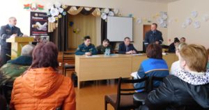 Затем эстафету безопасности принял начальник отделения охраны правопорядка и профилактики отдела внутренних дел Берестовицкого районного исполнительного комитета Вадим Сергеевич Поляков. Он рассказал о профилактике краж, по этой теме был продемонстрирован видеофильм. Участковый инспектор милиции Владимир Владимирович Желудок провел отчет о проделанной им работе на обслуживаемом административном участке за 2016 год. Подвел итого выступлениям своих подчиненных начальник отдела внутренних дел Берестовицкого районного исполнительного комитета Александр Васильевич Маркевич. Он рассказал также об оперативной обстановке и обеспечении безопасности на территории района.