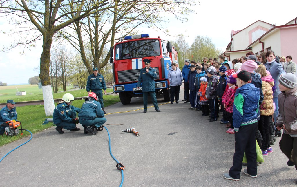 Перед началом мероприятия на площадке около здания филиала по культурно-досуговой деятельности агрогородка Старый Дворец развернулась выставка аварийно-спасательного оборудования и техники районного отдела по чрезвычайным ситуациям. У желающих была возможность примерить костюмы спасателей, посидеть в пожарной машине, увидеть, с помощью какого оборудования пожарные усмиряют стихию огня и приходят на помощь в других чрезвычайных ситуациях. Также работала выездная торговая точка, где можно было приобрести автономные пожарные извещатели, элементы питания к ним, огнетушители и другие товары.