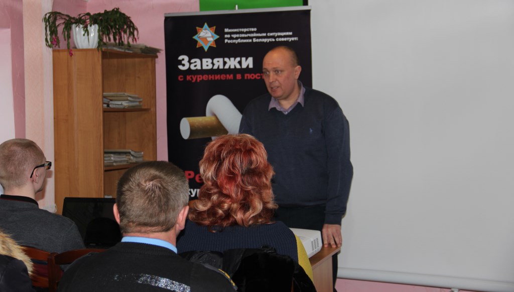 Короткое вступительное слово председателя сельисполкома Марины Карпуть, небольшая концертная программа, и к обрисовке картины пожарной ситуации в районе приступает начальник РОЧС Александр Горностаев: