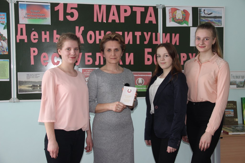 — К 25-летию Конституции Республики Беларусь в нашем учреждении образования проходит ряд мероприятий для школьников различного возраста, — дополняет заместитель директора по воспитательной работе Елена Будницкая. – Это и информационные часы во всех классах, и викторина «Мая Радзіма – Беларусь», и информационно-правовая игра “Дети и закон”, и торжественная линейка ко Дню Конституции, и тематический концерт, и видеолекторий “Гарант прав человека”, а также соревнования по волейболу и летнему многоборью “Олимпийские надежды Беларуси”. Мы хотим привлечь внимание школьников к Основному Закону страны, привить им уважительное отношение к символам белорусской государственности, формируя таким образом настоящих патриотов своей страны.
