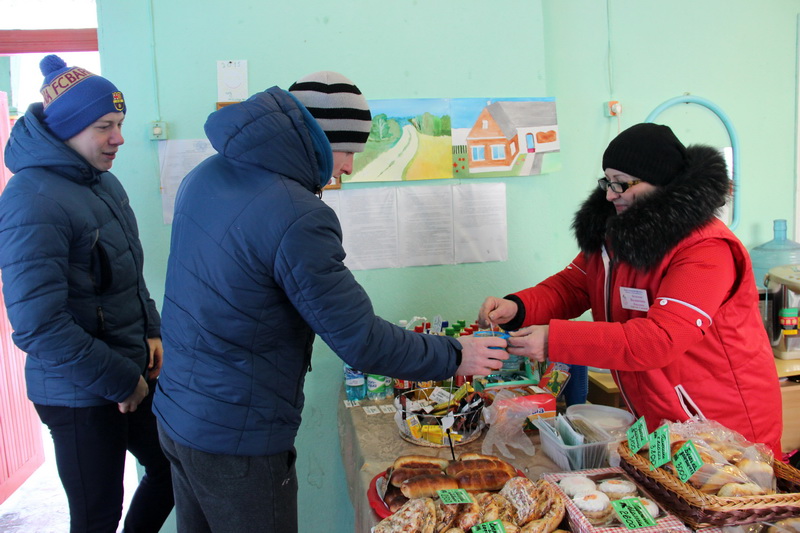 Во время проведения соревнований участники могли согреться горячим чаем и подкрепиться выпечкой, поскольку на лыжне работала выездная торговля Берестовицкого филиала облпотребобщества.