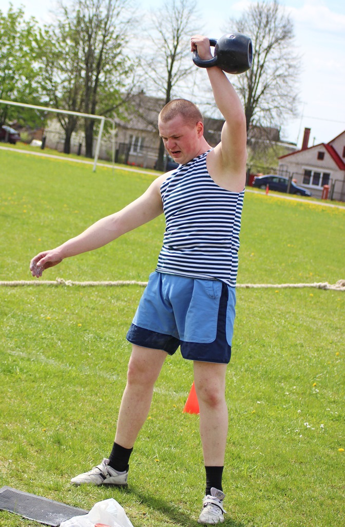 Соревнования по гиревому спорту проводились в трех весовых категориях: до 70 кг, до 90 кг, свыше 90 кг. Победитель в личном зачете в каждой из весовых категорий определялся по наибольшему количеству подъемов обеими руками. Первое место в итоговом зачете досталось команде Конюховского сельсовета. Всего ее участниками было совершено 290 подъемов, из которых 235 – на счету Романа Ярошика (на снимке). На втором месте в гиревом спорте – команда Олекшицкого сельсовета, на третьем – Малоберестовицкого.