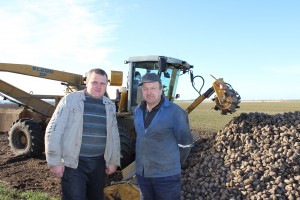 Водитель Анатолий Легащев и механизатор Дмитрий Сушко на погрузке сахарной свеклы