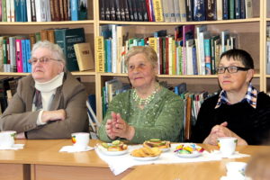 Но, пожалуй, лучше всего рассказать о поэте, о его богатом внутреннем мире, могут его произведения. Вниманию аудитории были представлены аудиозаписи песен Леонида Михайловича в исполнении берестовицких исполнителей. Песни о любви к женщине, к матери, к родному дому, наполненные собственным мироощущением автора и в то же время близкие и понятные каждому, не оставили равнодушными слушательниц. У многих на глазах были слезы, вызванные воспоминаниями и личными переживаниями. А это дорогого стоит.