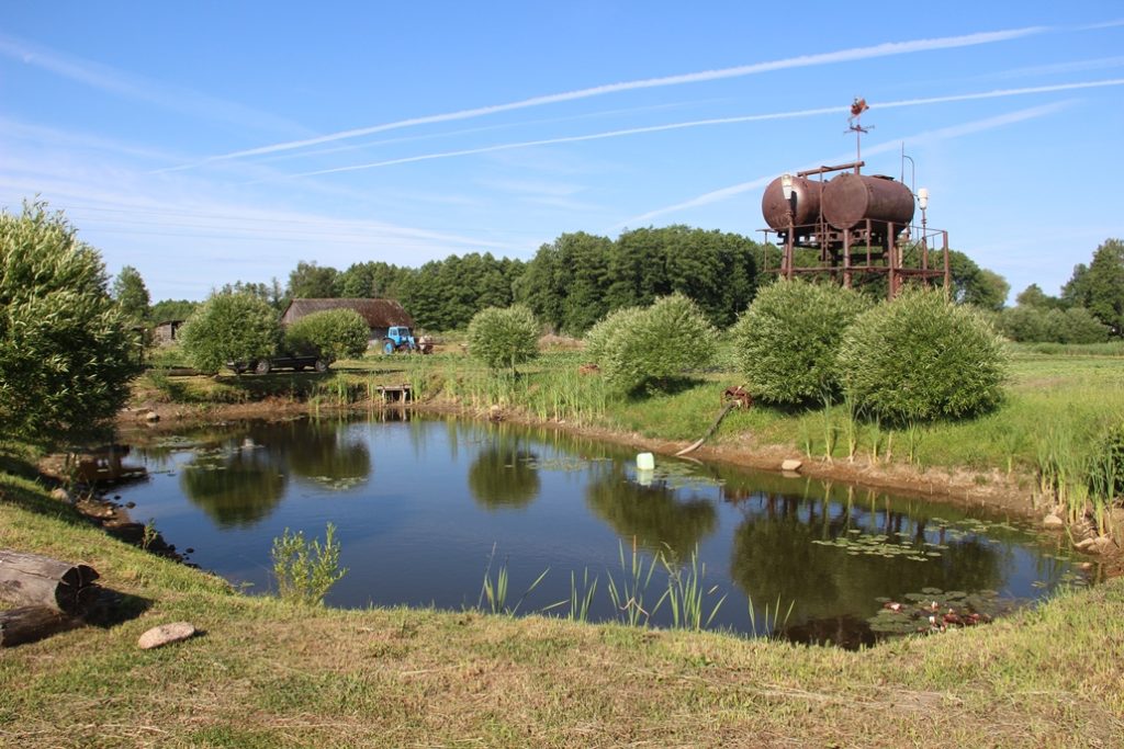 Эта содержательно-увлекательная «экскурсия» по когда-то дикому, а сейчас чрезмерно привлекательному уголку в деревне Поплавцы, началась ближе к полудню. Заинтриговать собеседнику удается еще по дороге к клубничным плантациям. Описываемая им картина первостепенного состояния участка – сплошные дикорастущие заросли растений и трав, устремившиеся вверх и глубоко пустившие свои корни деревья, – лишь подогревает интерес. Буквально несколько минут езды от городского поселка – и вот ты уже на месте, готовый впитывать информацию и лицезреть ее воочию. Очутившись на территории объекта, вспоминаешь сказанные только что слова и невольно задаешься вопросом: «Об этом ли месте шла речь?» Ведь сейчас тебя встречает ухоженный участок с уютной, окруженной виноградником беседкой, небольшим искусственным водоемом (и даже не одним!), над которым печально склонили свои ветви миниатюрные ивы, а еще – саженцами малины, молодым садом и ароматными кустиками клубники.