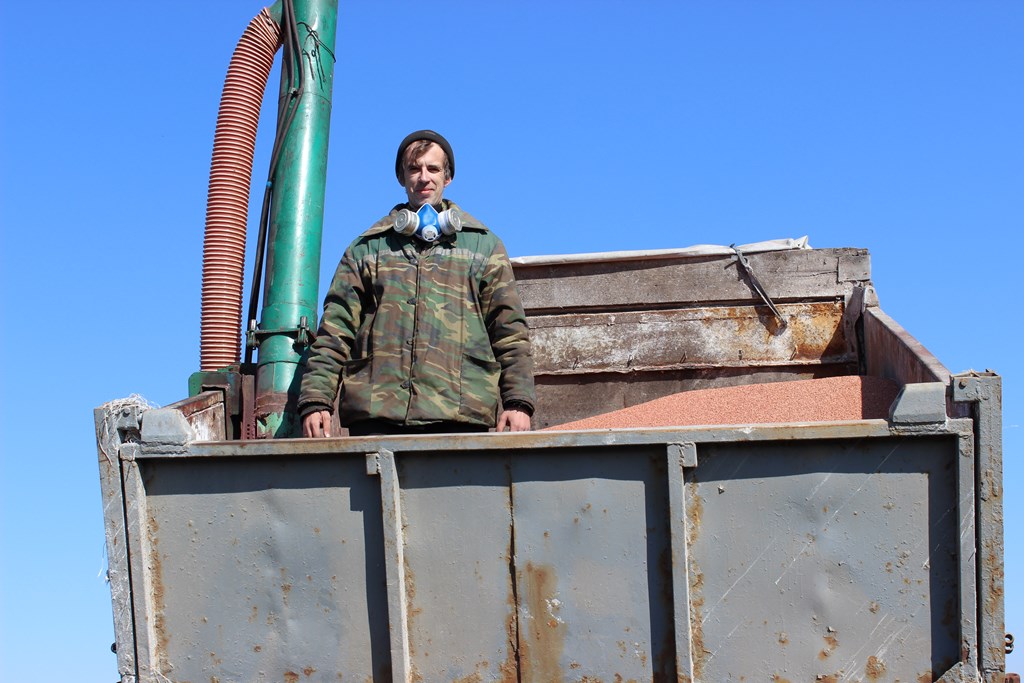 А працавалі на ўчастку ў той дзень вопытны вадзіцель Дзмітрый Мікалайчык на машыне МАЗ, якая прывозіць адразу 10 тон насення і абсталявана спецыяльным аўтаматычным прыстасаваннем для пампавання насення праз адмысловы рукаў у бункер сеялкі.