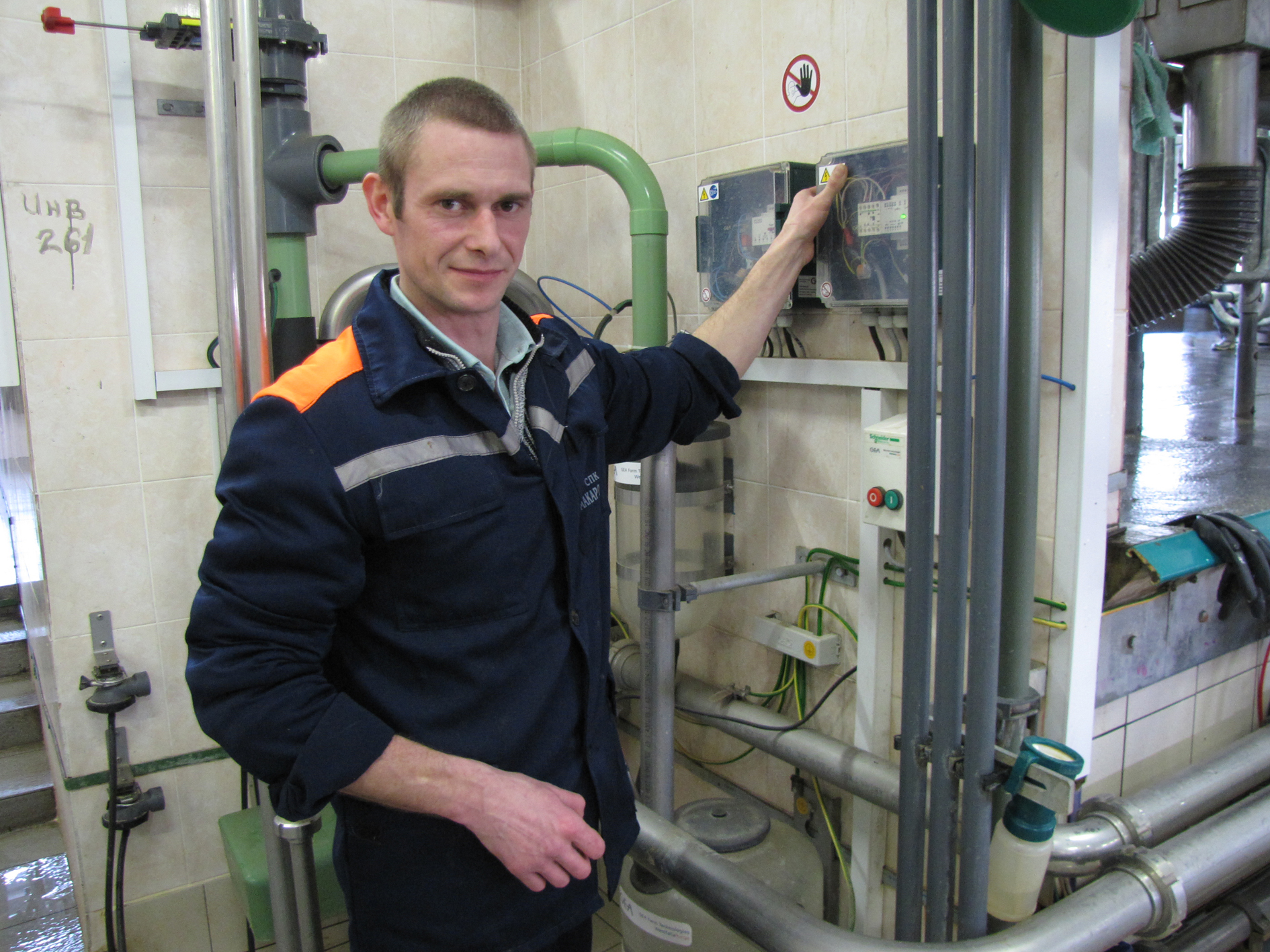 А працоўны дзень слесара – незаменнага тут чалавека, пачынаецца ў палове пятай гадзіны раніцы. Пасля падрыхтоўкі абсталявання пачынаецца першая дойка, а ўсяго іх тры. Заканчваецца працоўны дзень слесара ў 23 гадзіны. На пытанне, ці цяжка яму жыць у такім рытме, Юрый адказаў, што асабліва не стамляецца, бо вельмі дапамагае аўтаматыка.