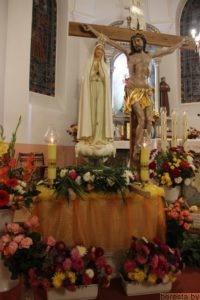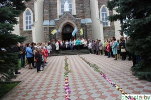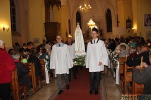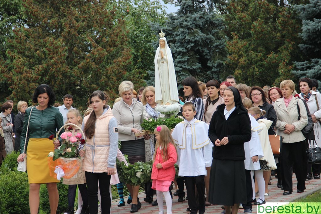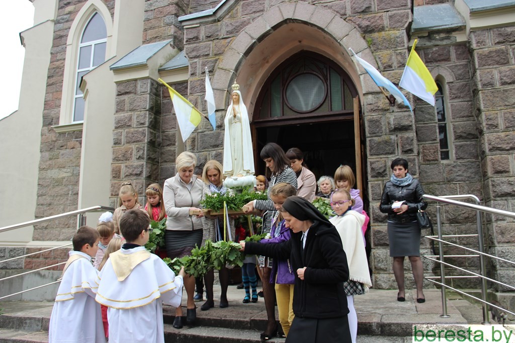 Шматлікія вернікі і госці парафіі разам са святарамі сустракалі фігуру Багародзіцы на вуліцы каля святыні. Урачыстай працэсіяй фігура Маці Божай Фацімскай была ўнесена ў касцёл і заняла пачэснае месца на ўпрыгожаным кветкамі троне.
