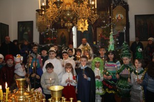 Разделить со взрослыми радость великого праздника Рождества Христова пришли в храм и дети – воспитанники воскресной школы. Они подготовили утренник, посвящённый дивному торжеству неба и земли. В театрализованном представлении в сопровождении церковного хора было воспроизведено сказание о Рождестве на земле Христа-Младенца. Здесь была звезда Рождества, которая вела в Вифлеем волхвов, где встречал мудрецов-звездочётов злой царь Ирод. Было здесь и явление ангелов пастухам, и радостное сияние, и ликование Христовой ёлки. По сложившейся традиции в заключительной части праздника дети зажгли рождественские свечи – символ добра, любви и благодарения Господу нашему Иисусу Христу и Деве Марии, подарившей человечеству Богомладенца.