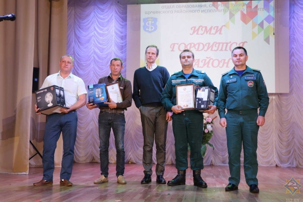 Начальник Щучинского районного участка Гродненского областного отделения Белорусского добровольного пожарного общества Алексей Федорович Богомазов вручил мужчинам ценные подарки.