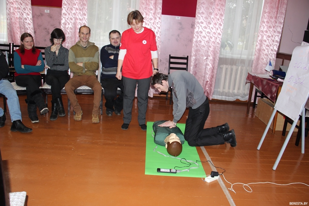 Председатель районной организации БОКК Елена Филипович продемонстрировала присутствующим, как оказывать первую помощь в различных ситуациях. На манекене было показано, как проводить сердечно-легочную реанимацию. Все желающие могли применить на практике только что полученные знания. Также Елена Михайловна рассказала о видах кровотечения и как их остановить, об ожогах различной степени и как помочь человеку, упавшему в обморок. В конце мероприятия ребята смогли посмотреть короткометражный фильм по теме тренинга.