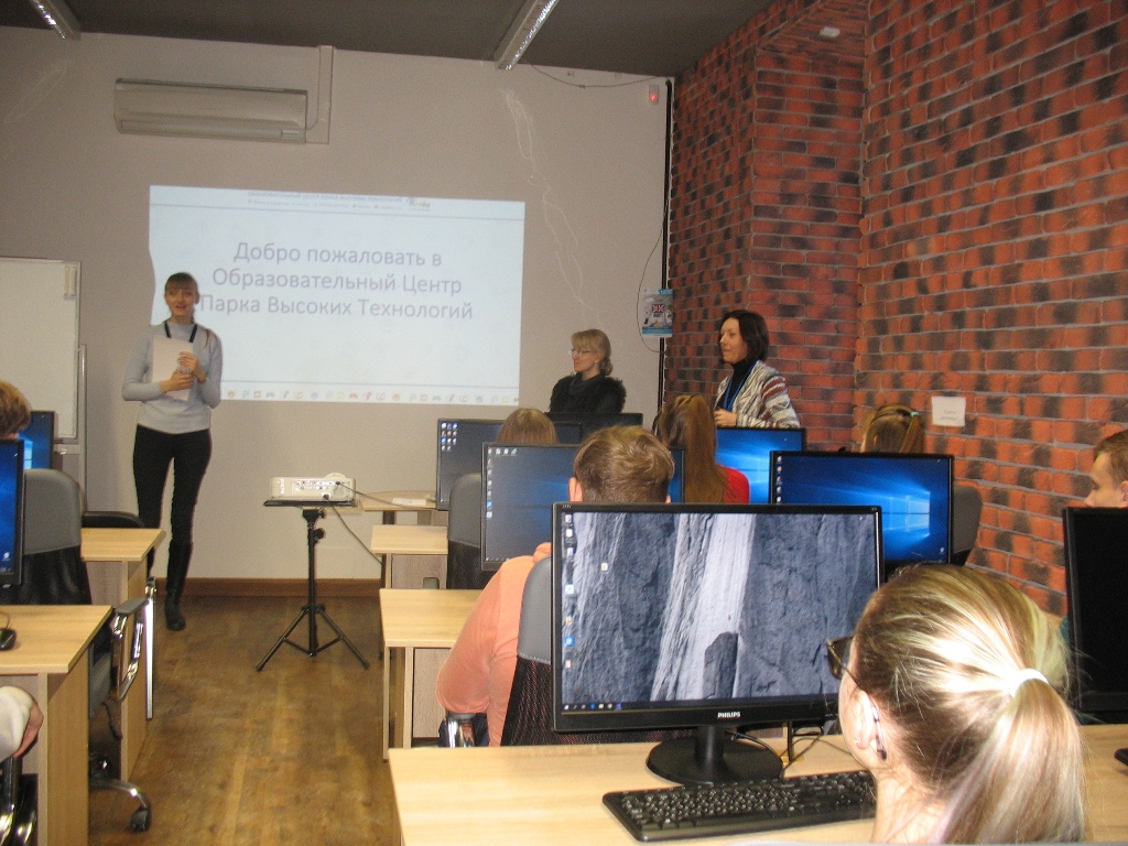Юлия Рогачевская, администратор учебных программ образовательного центра, рассказала об инфраструктуре парка, компаниях-резидентах, очертила круг проблем в развитии IT-сферы, которые приходится решать сегодня, и перспективах развития данной сферы в будущем.