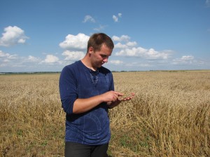 Радуе ўраджайнасць азімай пшаніцы – 78,3 цэнтнера з гектара. Загадчык участка Віктар Сарока (на здымку ўнізе), які нядаўна закончыў Гродзенскі аграрны ўніверсітэт, расказаў мне, што нядаўна яму выпадкова давялося ўбачыць стары нумар газеты “Гродзенская праўда” з сямідзесятых гадоў з рэпартажам са жніва менавіта з Бераставіччыны. Дык тады добрай ураджайнасцю тут лічылася 32 цэнтнеры з гектара, зараз жа яна большыя, чым удвая. Сярод абавязкаў маладога спецыяліста і кантроль якасці жніва. Ён паказаў мне, як праводзіць гэтую важную праверку. Каб вызначыць, што страт новага ўраджаю няма, трэба літаральна кланяцца зямельцы — маці. Валок з саломай разграбаецца данізу, пакуль не пакажацца пацяруха, затым Віктар апускаецца на калені, дзьмухае на яе, каб разляцелася, і ўжо затым лічыць зярняткі, якія застаюцца