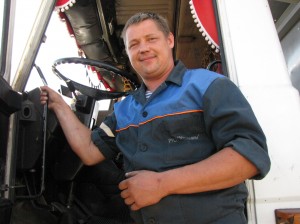 А адвозіў збожжа ад гэтага адказнага экіпажа на машыне “МАЗ” вадзіцель Ігар Каровін. Гэта яго 13-ы сезон на жніве, чалавек стараецца, каб уборачны канвеер працаваў “як гадзіннік”. Адвозіць адным рэйсам да сушылкі па 7 тон зерня.