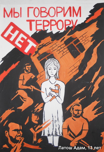 З творчасцю мастакоў можна было пазнаёміцца на выставе, арганізаванай у фае школы мастацтваў. Яна называлася «Крывое люстэрка тэрору» і складалася з 30-ці сацыяльна значных плакатаў антытэрарыстычнага зместу – тэмы надзённай і актуальнай ва ўсім свеце.