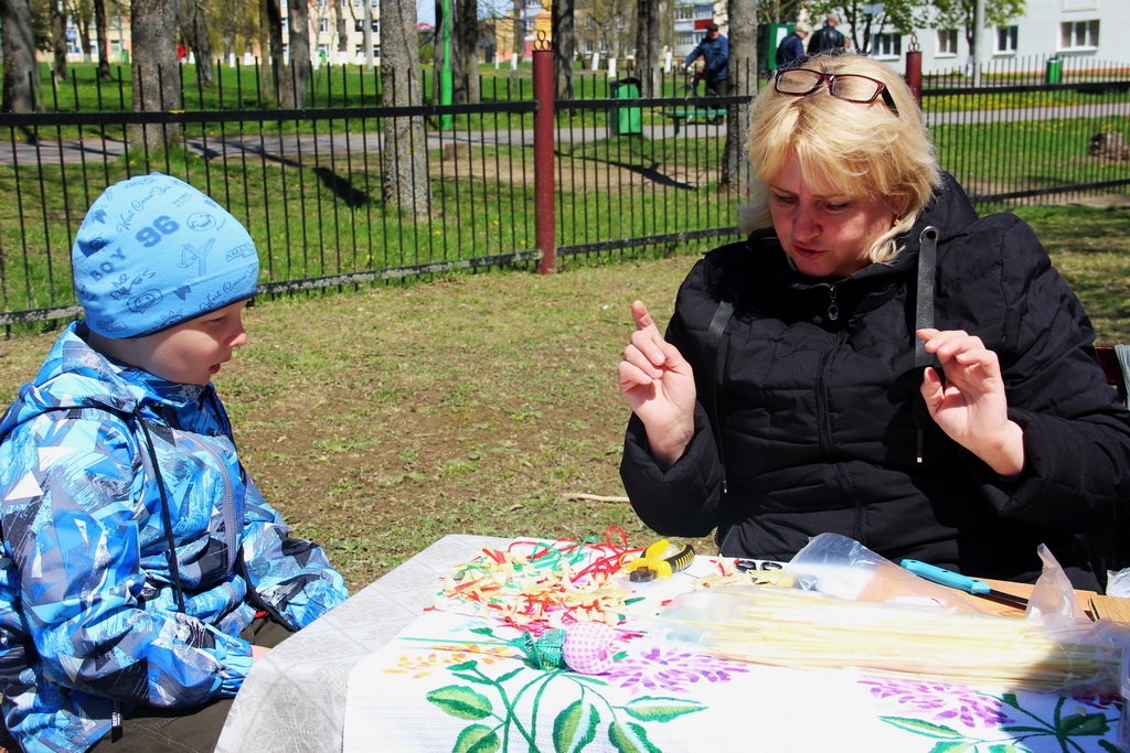 На тематических площадках музея Белки и Берестовицкого Дома ремесел, работавших на празднике в Большой Берестовице, были проведены мастер-классы по изготовлению своими руками символов 9 Мая – «Яблоневого цвета» и «Победной звезды».