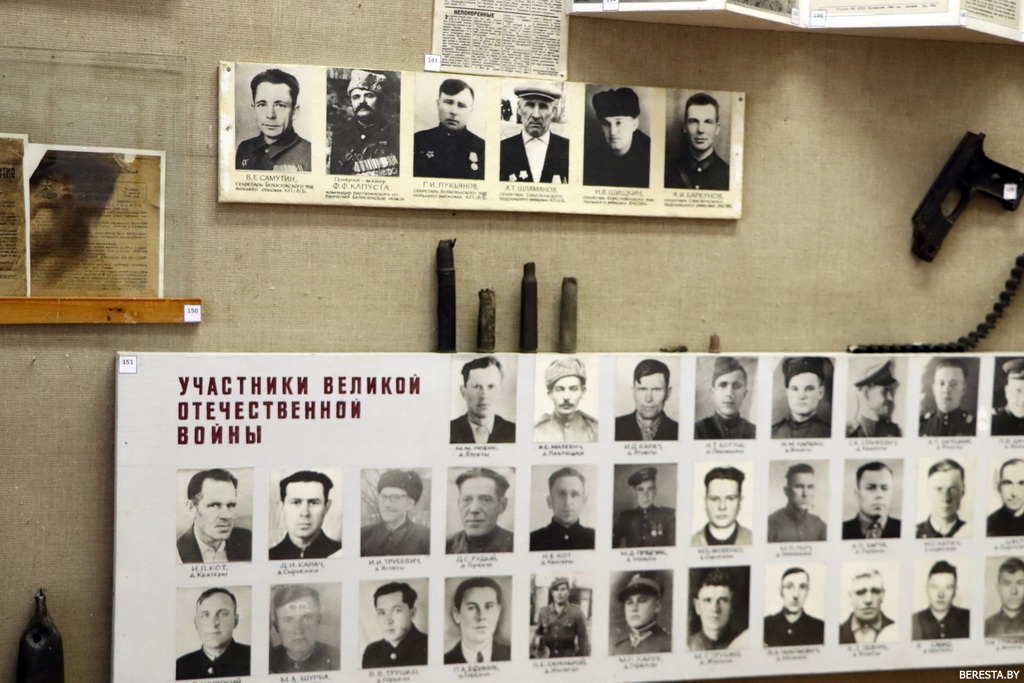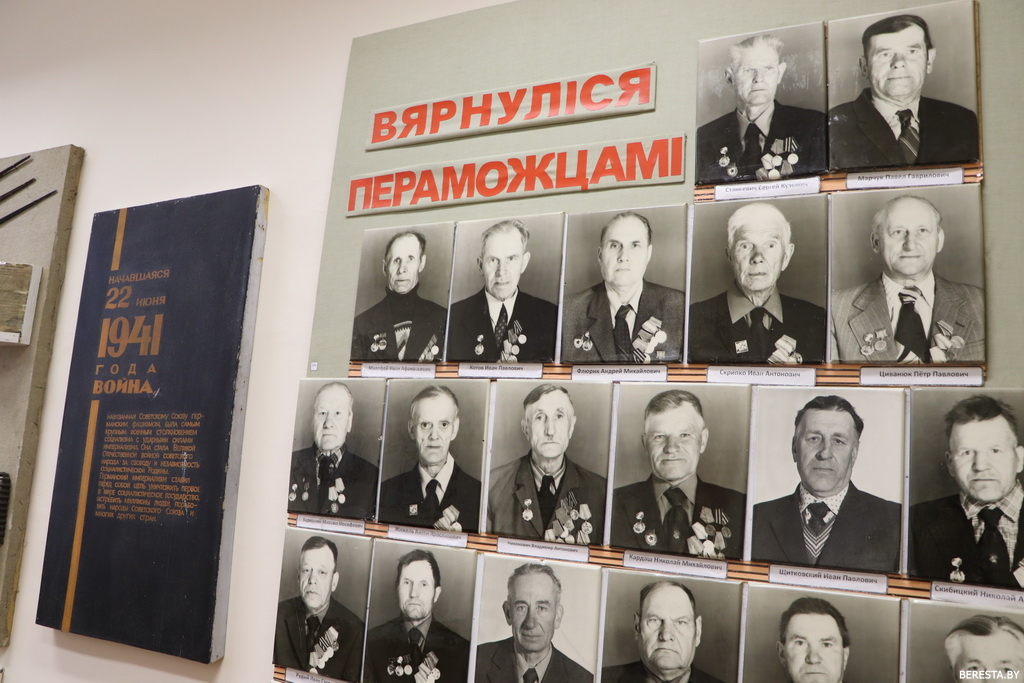 Отдельное помещение выделено важным экспозициям – «Шла война народная» и «История школы». Здесь размещены материалы, посвященные Великой Отечественной войне: фотографии воевавших земляков, детали боевого оружия, предметы солдатского быта, листовки, газеты и тому подобное.