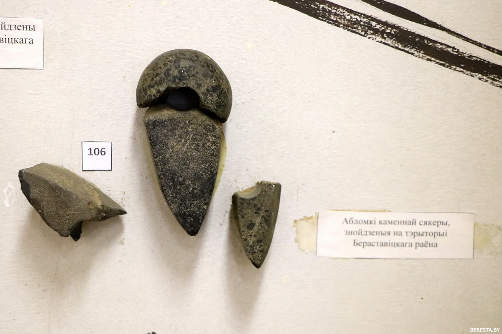 конца XIX-начала XX века. Есть и экспонаты периода каменного века, найденные на территории агрогородка. Это первые каменные орудия труда – топор, молоток скребок.