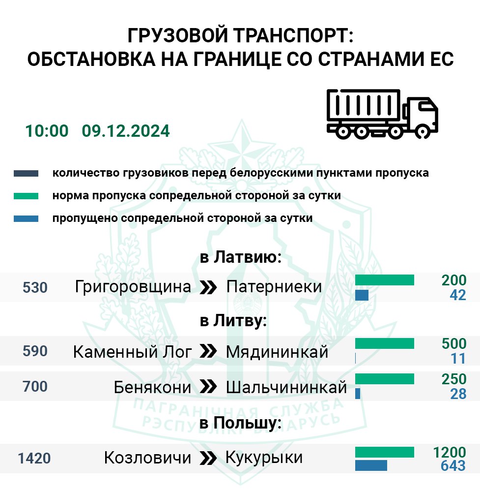 С пятницы очередь грузовиков на въезд в ЕС увеличилась на 645 единиц. По состоянию на 10:00 перед всеми сопредельными пунктами пропуска фиксируется 3240 большегрузов. Несмотря на увеличение количества фур, европейские контрольные службы продолжают игнорировать нормы пропуска транспорта.
