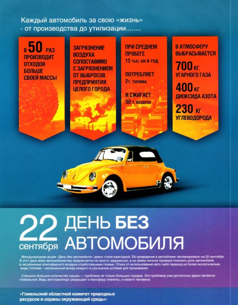 День без автомобиля нужен не только для того, чтобы выразить свою озабоченность экологией городов или же проблемами городской инфраструктуры. Этот день дает нам возможность по-другому посмотреть на свой ежедневный распорядок. Автомобиль, незаменимый в дальних поездках, может оказаться не так уж и нужен для простого похода в магазин, или, чтобы добраться до работы.