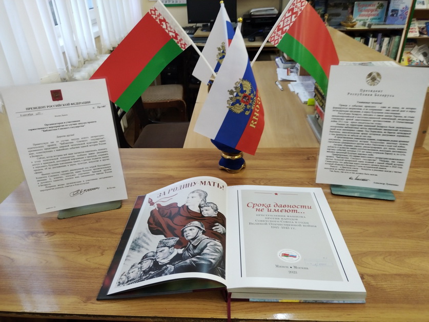 У рамках праекта «Библиотека Союзного государства» і да 25-годззя Саюзнай дзяржавы ў філіяле «Малабераставіцкая інтэграваная сельская бібліятэка» арганізавана выстава адной кнігі “Срока давности не имеют… Преступления фашизма против народов Советского Союза в годы Великой Отечественной войны 1941-1945 гг.»