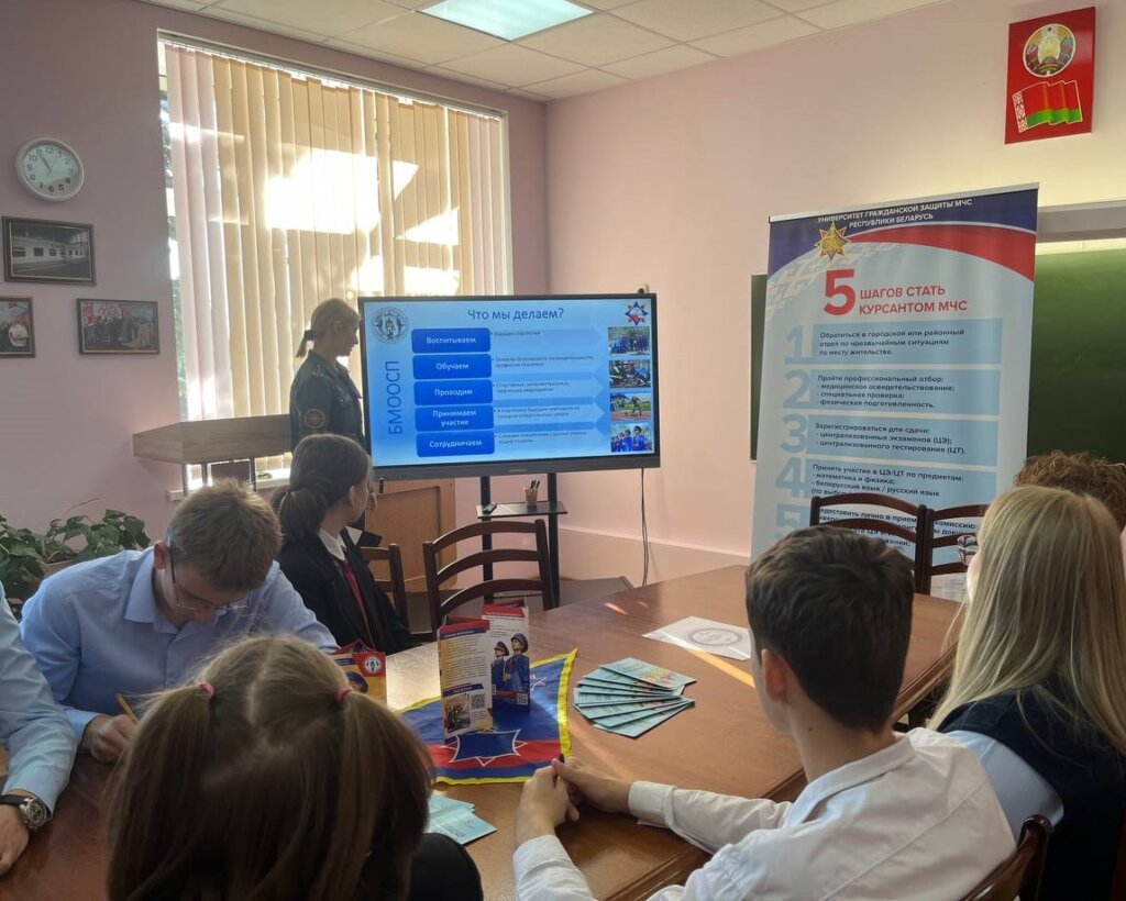 Представители службы 101 разъяснили школьникам, чем занимается Белорусская молодежная общественная организация спасателей-пожарных, и как в нее вступить. Активисты организации рассказали об интересных мероприятиях, в которых можно принять участие.