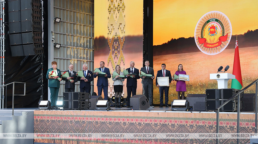 Президент Беларуси Александр Лукашенко на областном фестивале-ярмарке «Дажынкі-2024» в Мостах наградил лучших тружеников села Гродненской области, передает корреспондент БЕЛТА.