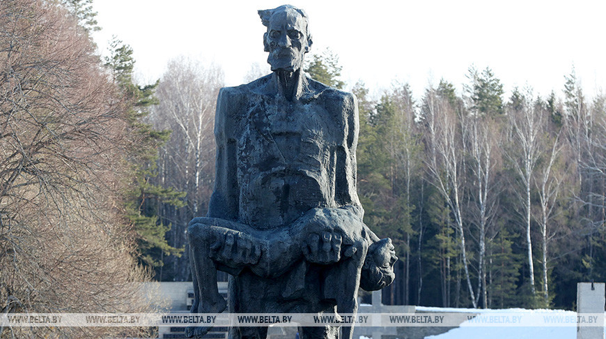 «Спустя годы горечь и гнев не утихают. Особенно сегодня, когда чума нацизма обрела последователей среди наемников, предателей и преступников и вплотную подобралась к нашим границам, — говорится в обращении. — У белорусов для них был и остается один ответ — дух всенародного сопротивления. Его символ — непокоренный человек, который, восстав живым из огня, с телом мертвого сына на руках сквозь время несет вечное проклятие фашизму».