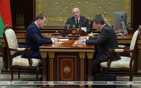 ПодробнееПрезидент Беларуси Александр Лукашенко принял сегодня с докладом первого заместителя премьер-министра Николая Снопкова и министра финансов Юрия Селиверстова, передает корреспондент БЕЛТА. «Речь пойдет об исполнении государственного бюджета, местных бюджетов, — сразу обозначил цель встречи Президент. — При этом хочу ваше внимание обратить на то, чтобы вы прежде всего ответили мне на вопрос по поводу влияния […]