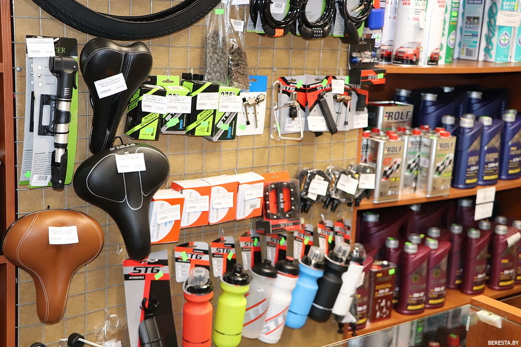 Між іншым, тут праходзіць акцыя “Падзяка за адзнаку”. Вучні, якія маюць у атэстаце 9-10 па беларускай мове і літаратуры, атрымліваюць 10-працэнтную зніжку на набыццё веласіпеда альбо аксэсуараў да яго. Так што, прыносьце дзённікі і карыстайцеся бонусамі ад магазіна.