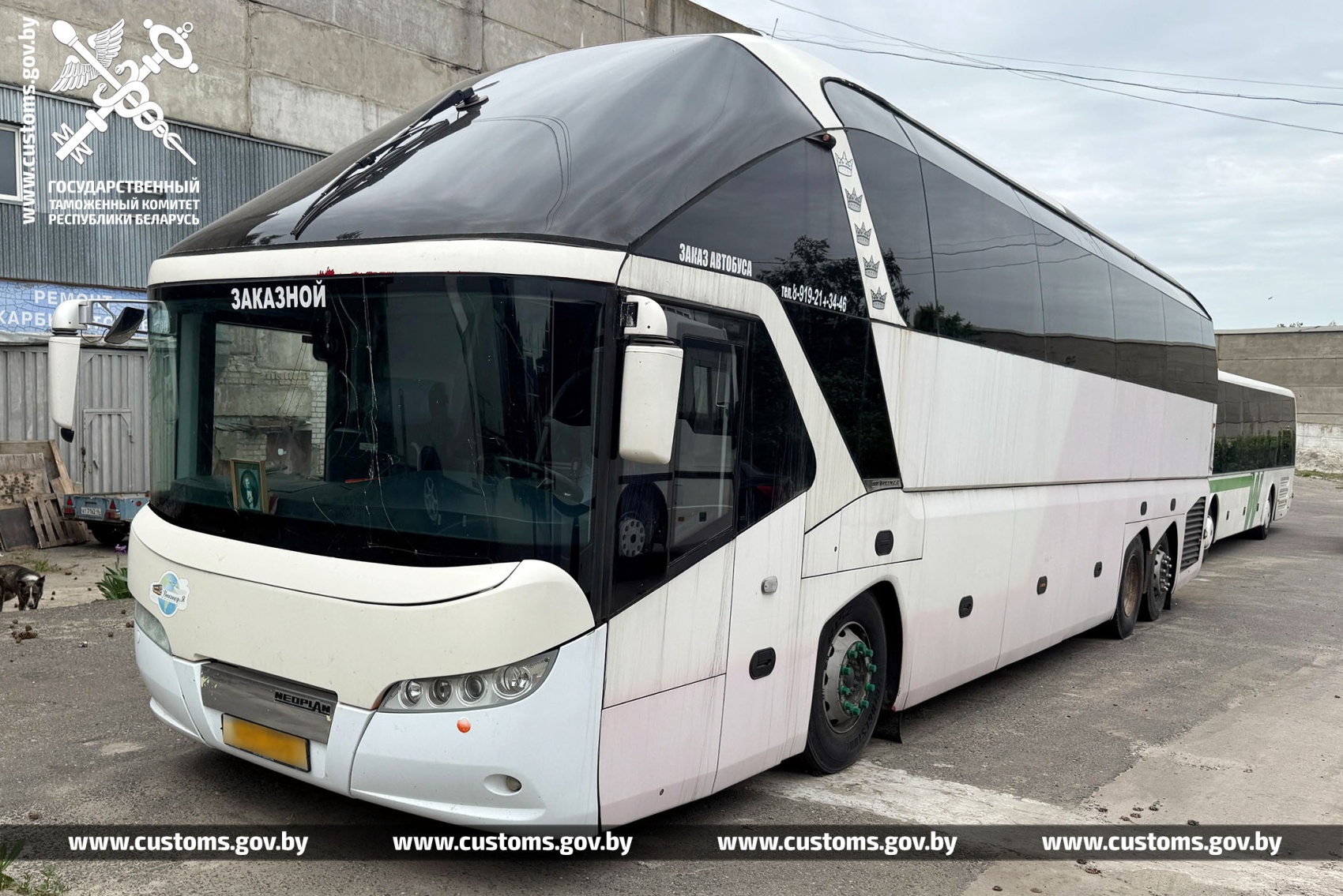 Один из таких автобусов в рамках проведения международной операции был взят таможенниками на контроль. Так, транспортное средство было размещено на охраняемой стояночной территории в г. Курске, где на него навесили регистрационные знаки Российской Федерации и частично демонтировали опознавательные знаки.