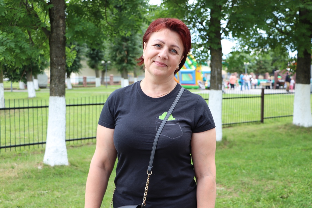 — Для меня сегодняшний день очень волнительный – на торжественном митинге мне вручили сертификат  о занесении на районную Доску почета, я рада, что так высоко оценили мой труд и с прекрасным настроением пришла на продолжение праздничных мероприятий. Очень много локаций, сложно все охватить, но я думаю, что каждый найдет себе сегодня развлечение по душе. Для меня День Независимости  — очень важный праздник,  и я горжусь, что в нашем маленьком городке организовано его такое масштабное празднование.